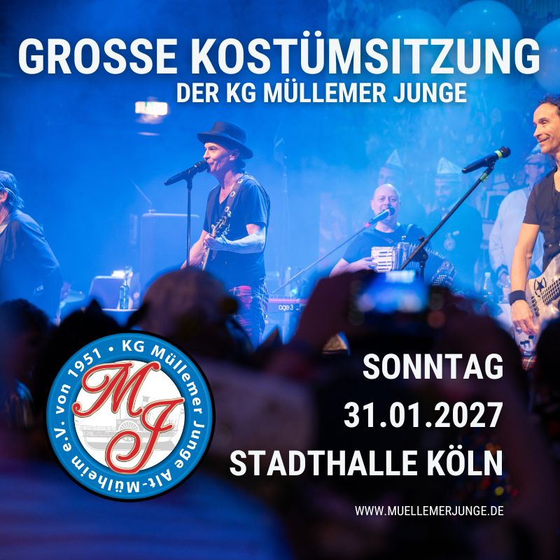 Große KostümSitzung am 31. Januar 2027 @ 15:00 | Das mitbringen von Speisen, Getränke und Snacks ist nicht gestattet. | Die endgültigen Uhrzeiten können geringfügig abweichen. Es gelten die Angaben auf der Eintrittskarte.